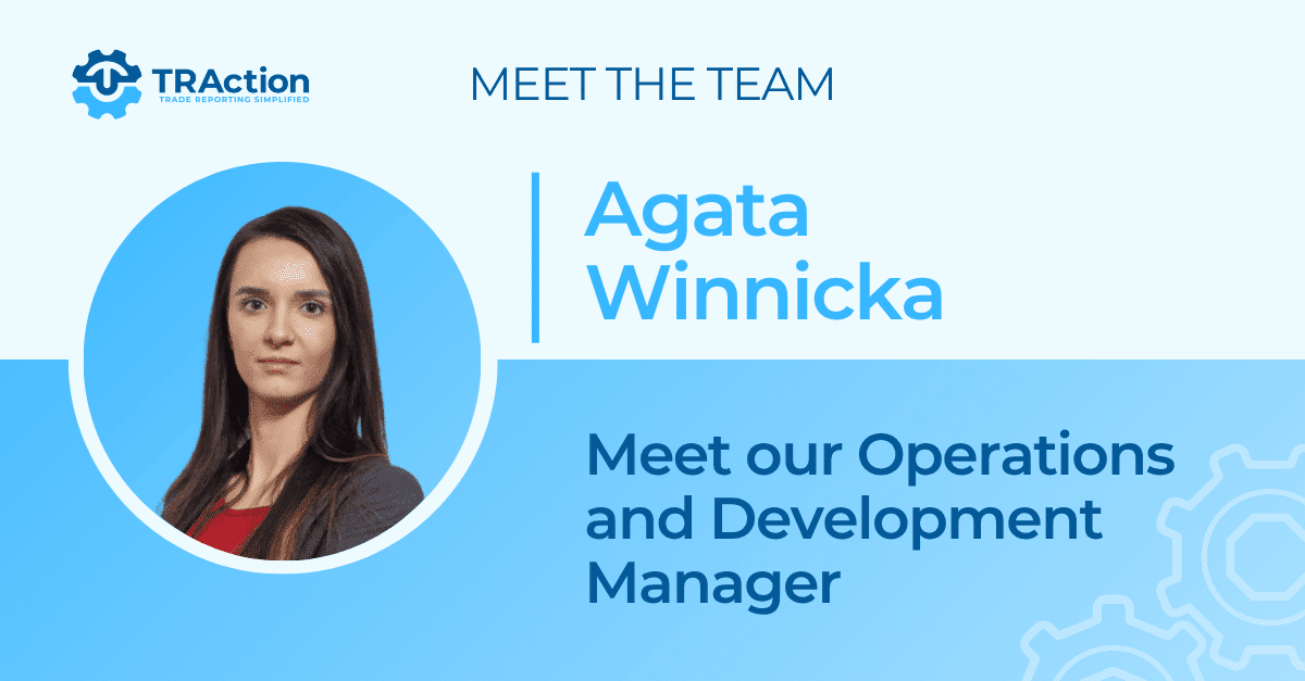 Agata explains her main responsibilities are “providing guidance and mentorship to onboarding, development and processing teams, establishing policies, procedures and controls to reflect regulatory requirements, conduct regular reviews of operational procedures, lead project managements, oversee and manage staff responsibilities and supervise client-related tasks and internal communication between TRAction’s Team.“