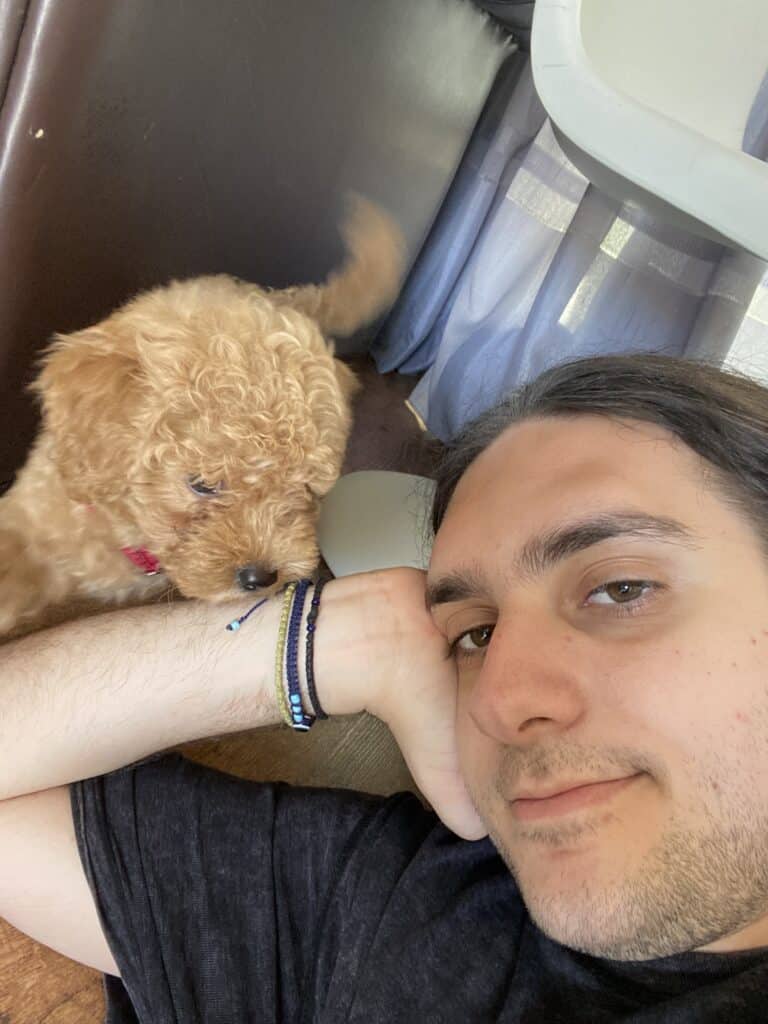 Giorgos’ life is just as active. He explains, you’ll often find him “playing football or card games with friends, spending sunny days at the beach, or heading out for long walks with my dog, Lily.”