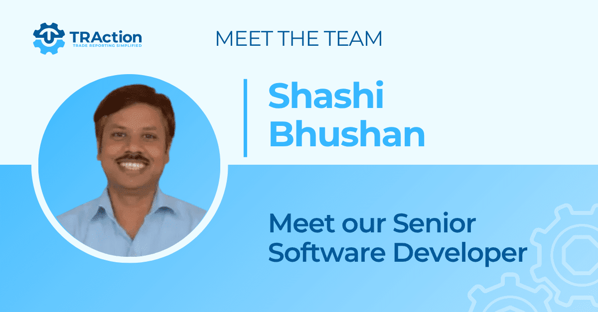 Shashi explains he is “primarily responsible for enhancing and extending the core functionality of the TRAction Engine. A key part of that is integrating new trading platforms into our system to make our reporting process more seamless.” Shashi also works on automating various processes that used to require manual intervention, “this helps reduce errors and accelerates delivery for our clients.”