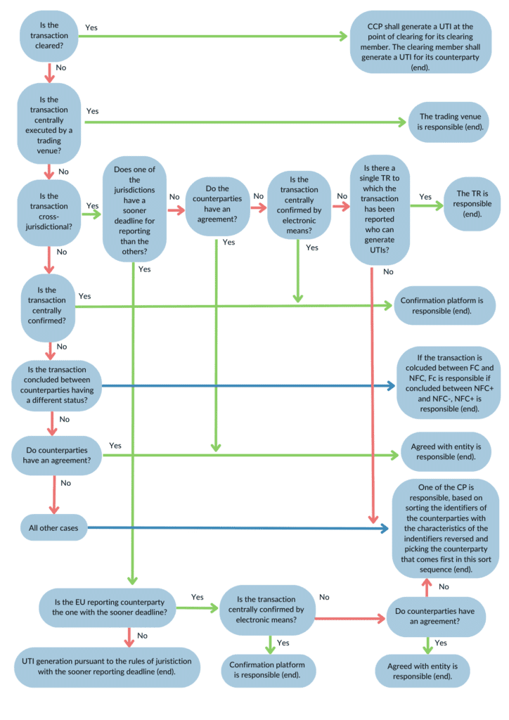 Section 4.11 Final Report EU EMIR Refit illustrates in a flowchart, as set out below (“Flowchart”), how counterparties should determine the entity responsible to generate the UTI.