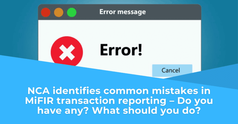 NCA identifies common mistakes in MiFIR transaction reporting – Do you have any? What should you do? October 2, 2020 Read More »